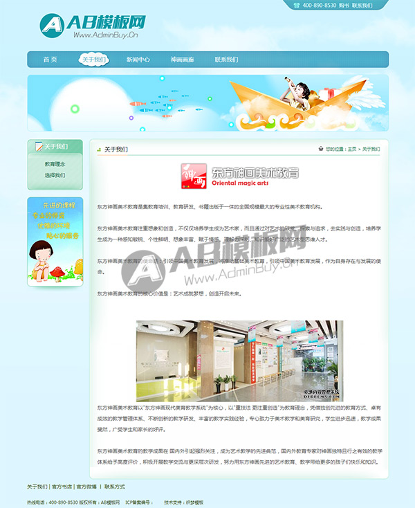 少儿美术学校网站模板 美术培训学校网站源码-海报