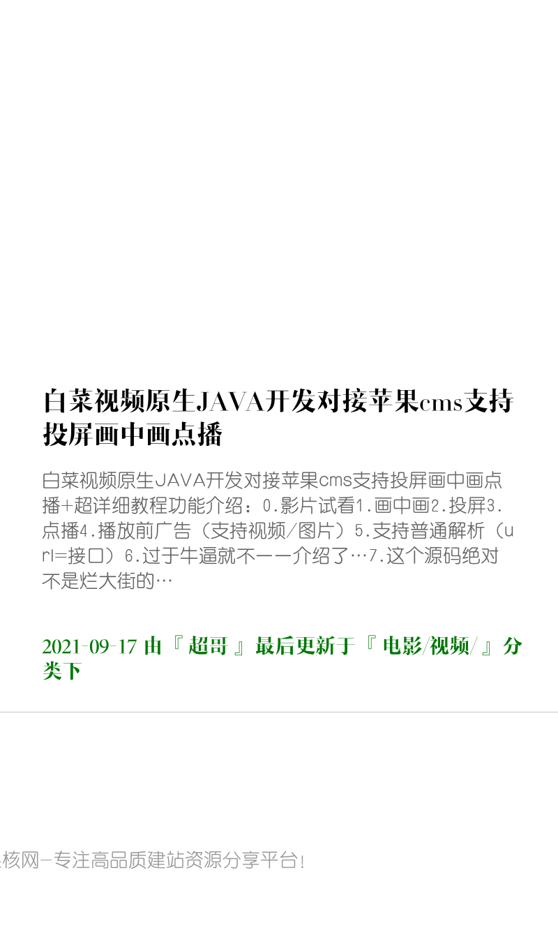果核网 电影/视频/音乐 白菜视频原生JAVA开发对接苹果cms支持投屏画中画点播+超详细教程 https://www.guohew.cn/3377.html