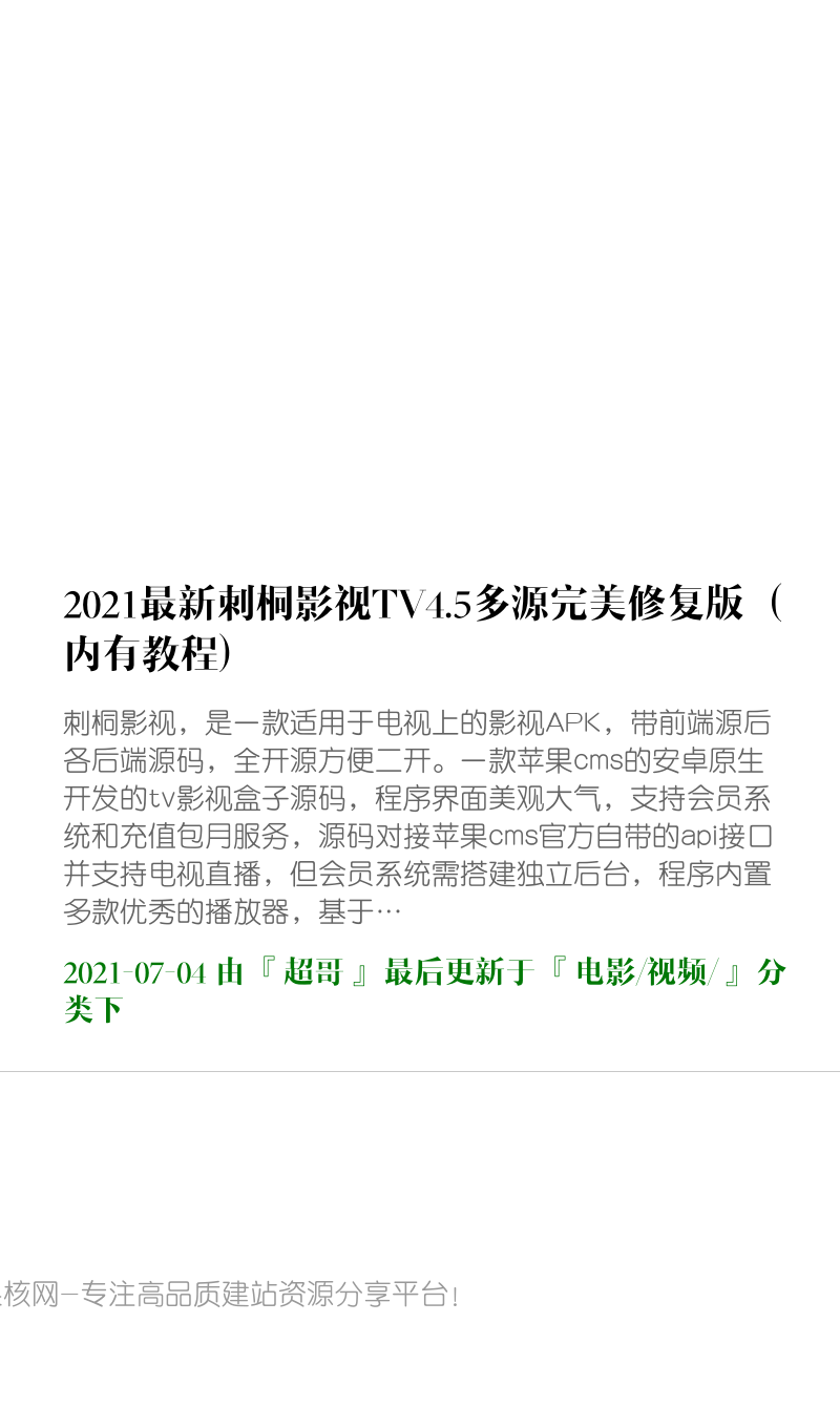 刺桐影视,是一款适用于电视上的影视APK,带前端源后各后端源码,全开源方便二开。